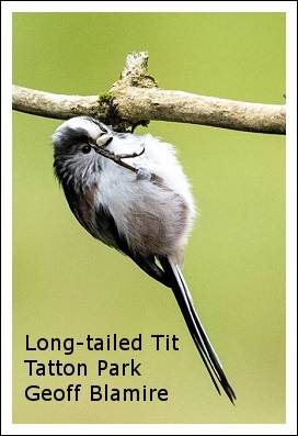 The birds seem to share our, probably mistaken, optimism; yesterday along Gleavehouse Lane in Mobberley Song Thrushes and Dunnocks were both singing, something Geoff and Sheila Blamire found on their daily walk last Tuesday (16/12) ..........." Tuesday: Mereside Lane a Song Thrush was singing in the sunshine! Peacock Lane, High Legh were c24 Fieldfares and c6 Redwings feeding on berries in a hawthorn tree; c12 Goldfinches and 2+ Siskins feeding in an alder; then 2 skeins of Pink-footed Geese (c200) flew overheard. On Moss Lane we watched a Goldcrest feeding close by us (we had 2 Goldcrests yesterday).".............Derek Pike was feeling optimistic too on a journey back from Macclesfield .........."On the way back from Macclesfield Hospital yesterday afternoon (20/12) having to drive slow behind a tractor in Ollerton there was a Rookery in full swing several pairs of birds, soon be Spring! "............ I've been spending some time in the quieter part of Tatton Park......" I thought it might be a bit busy in Tatton today with an improvement in the weather. It was! The Knutsford drive was crowded with pedestrians, so I drove to the Melchett car park and walked to Millennium Wood via the Swan Clump hoping to bump into some Crossbills. Plenty of activity in the trees surrounding the Old Hall, mainly noisy Jackdaws but a small flock of Long-tailed Tits moved through the lower branches. Walking along the bank towards Swan clump I thought the stand of Sweet Chestnut trees looked good in the bright sunlight. They look even better in black and white. The clump was quiet, no Crossbills just a couple of Coal Tits and a single Siskin. Only a couple of distant dog walkers; this is the best part of the park at this time of the year. The Mill Pool held Moorhen, Coot, Little Grebe, Cormorant, Mallard and no less than 10 Gadwall. The Fieldfares I saw last week are still around in large numbers, I guessed about 50, I assume there were some Redwings in the flock as well but they were a good distance away. Millennium Wood was quiet - Robin, Blackbird, Blue Tit and Goldcrest. A few new species for my list at Melchett - Black-headed Gull, Pochard (6), Mute Swan (2). Great Tit and Great Spotted Woodpecker on the feeders. More Siskins in the alders at the south end of Tatton Mere. Heading back to the car I met Darren who confirmed his last day as a ranger will be 27th February, so he'll miss our meeting that night as his colleagues are insisting on going for a quiet(?) drink."........ ........." Nice to see you Tony, and Sheila and Geoff earlier. I had a quick scan of the meres too but not much to report…. A few goldeneye and 6 little grebe on Tatton Mere. Sorry I missed the pavlova and the Christmas party. I was on driving duty taking my daughter to her work Christmas party in Crewe. Yes, not long until I join you and get to spend more time birding. Just in time for spring migration!"............... Thanks Darren - I'm looking forward to being inundated with records for the website once you've hung up your ranger's boots!! Also enjoying her retirement is our Hon. Secretary, Karina who's hopefully recovered from the disappointment of the Brisbane test match and is now in Hong Kong. She's kindly sent me one her "special" snaps. Simon and Lyn have paid a second visit to the Southport area ........." We made a return visit yesterday to Marshside, to have a look for the Smew on the Marine Lake. No luck there, but the Pink-footed geese were showing nicely near to the edge of the marsh. We returned via Lunt Meadows, which has changed since we were last there: more & better paths, a learning centre with the possibility of a tearooms opening soon and a ? parking charge. However, the highlight was the appearance of a Short-eared Owl that quartered the field alongside the drive, giving close views in the winter afternoon sunshine. "...........Thanks Simon a great picture of the owl. The highlight of our November field trip to Burton Mere Wetlands was the discovery of an Eastern lesser Whitethroat on the walk down to the Border Hide: it's apparently still there and attracting a good deal of attention, according to the Burton Mere Facebook page, although I don't think anyone has managed any photos yet. Saturday (20/12) Geoff and Sheila now have four Goosanders on their local patch! ............." Little Mere: 4 Goosanders (2m 2f) – bearing in mind that the size of Little Mere is only a little bit bigger than Ciceley Mill pool and a fraction of Rostherne Mere it gets some tremendous birds! Song Thrush singing close by. Ciceley Mill pool: Water Rail squealing and pair of Mute Swans. Rostherne Mere: 1f Goosander, Cetti’s Warbler heard and 2 pairs of Mute Swans (1 male wasn't happy having the other pair there). All the other usual wildfowl there except for any Goldeneye."............. A reminder that it's our Christmas walk on Tuesday 30th December. This year around Neumann's Flash and Dairy House Meadows. 09:30am meeting at the Witton Mill car park CW9 5LN, Sheila Blamire will be leading so please let her know if you're coming along. chairman@10X50.com Finally a reminder of what we were up to at the end of the last century!! "21/12/97 Overwintering Blackcaps have been increasing in numbers over the past 20 years, this year though we have not had any locally so a male of the species on the Moor today was a welcome sight, it was in the company of a loose, mixed flock of Tits and finches. Also present in the flock was a single male Brambling and a super little female Lesser Spotted Woodpecker, nice to see one at this time of year when they are very elusive - we normally have to wait until the breeding season when one or two pairs can be located by call." Lesser Spotted Woodpecker - those were the days!! 15th December 2025 .......... The trip to Marshside and Martin Mere.