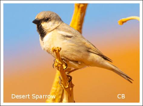 Soon though it was time to move on and look for our next target. This again was a short drive through the desert (Lanner Falcon seen on the way, just standing on the desert floor). We had barely got out of the car when Hamid called it, a Desert Warbler (African Desert Warbler to give it its full name). Hamid borrowed Colin's camera and was determined to get some shots, so I cautiously followed him hoping for the same. Eventually managed to get some reasonable record shots of this bird which was basically moving from bush to bush, not staying still for very long. It was almost a shame to get so transfixed on this bird as there were several very showy Hoopoe Larks in the area too.