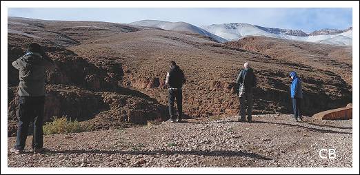 Up at for a 7.30 breakfast and an 8.00 departure. I didn't much fancy getting out early to bird around the hotel before breakfast as it was so cold and we hadn't seen much last night, so I had a fairly relaxed start to the day after a fitful night's sleep. Breakfast was the usual decent if bready spread with coffee and juice and shortly after that we were on our way to one of the potential hot spots of the trip, the Tagdilt Track, a world-renowned birding spot where we were hoping for a nice little selection of new species, especially Larks and other desert birds.